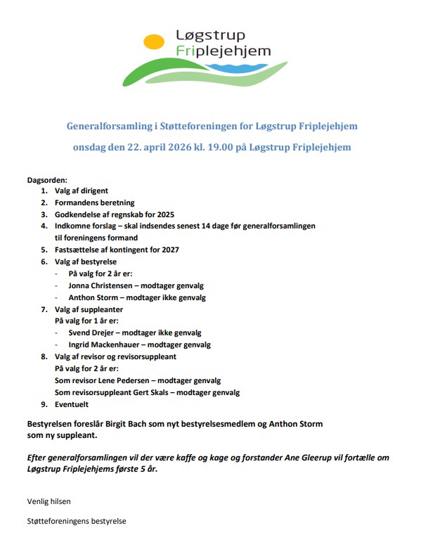 Se vores nyheder her: Meta Få mere information om Friplejehjemmet Her kan du læse og udforske vores interaktive folder. Her kan du downloade og evt. udskrive vores brochure: Brochure Logstrup-Friplejehjem